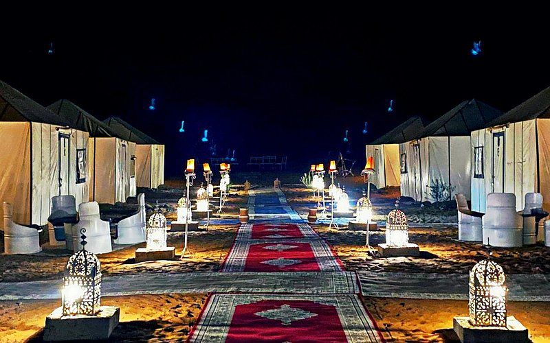This magnificent desert camp provides for your unforgettable vacation. It is located in the serene and romantic sand dunes of Erg Chebbi. For couples, individuals, and small groups wanting uncompromised privacy and solitude, it is the ideal vacation. Ten luxurious, roomy tents with a feeling of comfort and grandeur are available at our private luxury camp. The Private Camp is intended for people who value the solitude that complete silence may provide. Get away for a day or two, enjoy the opulence, and reflect or go for a walk in one of the most beautiful Sahara Deserts in the world.
